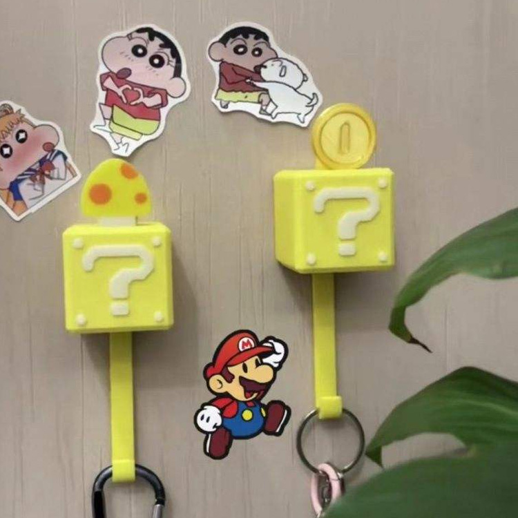 3D tištěný věšák na klíče Vtipný kreslený přívěsek Keybox. Zábavný a funkční věšák na klíče inspirovaný Mario s 3D kresleným designem, vestavěnými magnety a výraznými barvami. Nalepte si jej na ledničku nebo dvířka pro kreativní způsob, jak udržet klíče uspořádané a zároveň dodat každému prostoru rozmarnou herní atmosféru.