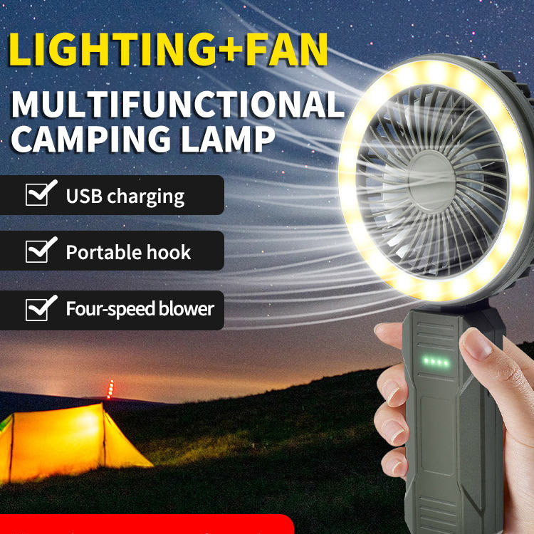 4000mAh multifunkční venkovní mini ruční lampa s ventilátorem. Zůstaňte chladní a osvětlení při všech svých dobrodružstvích. Tato přenosná LED lampa pro kempingový ventilátor kombinuje výkonný ventilátor s jasným osvětlením. Jeho velká 4000mAh baterie zajišťuje dlouhotrvající dobíjecí USB. Kompaktní, ruční design je ideální pro venkovní použití.