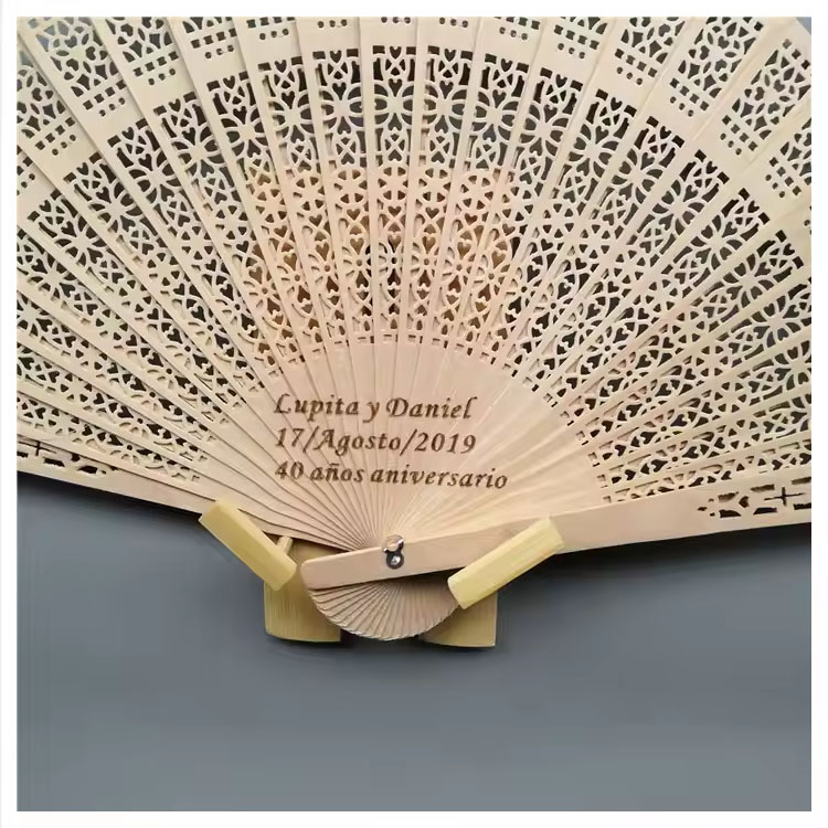 Bambusový vintage dárek k narozeninám skládací dřevěný ruční ventilátor. Vlastní rytý bambusový ruční ventilátor — elegantní, skládací a lehký s vintage kouzlem. Ideální na svatby, večírky nebo kulturní akce. Přizpůsobte se svým logem nebo zprávou a získáte nadčasový a praktický dekorativní dárek.
