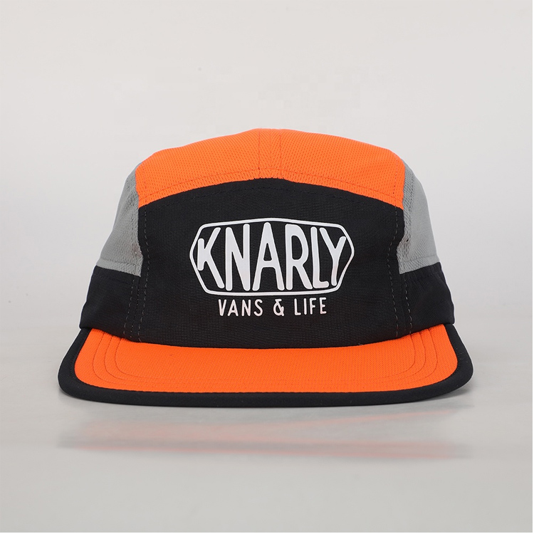 Design výšivka Logo celoplošný tisk 5 panelová čepice Camp. Vaše dokonalé řešení pokrývek hlavy na míru pro sport a dobrodružství v přírodě. Tato 5panelová kšiltovka nabízí možnosti prémiového vyšívání a celoplošného tisku. Navržena jako lehká běžecká a kempingová čepice, kombinuje prodyšné pohodlí s odolným výkonem.