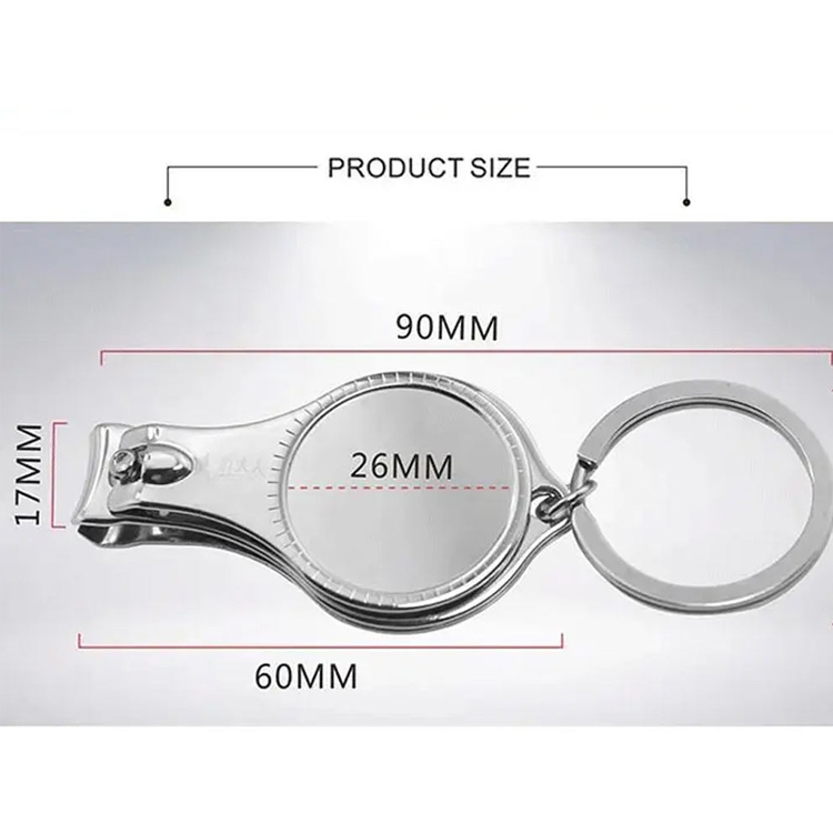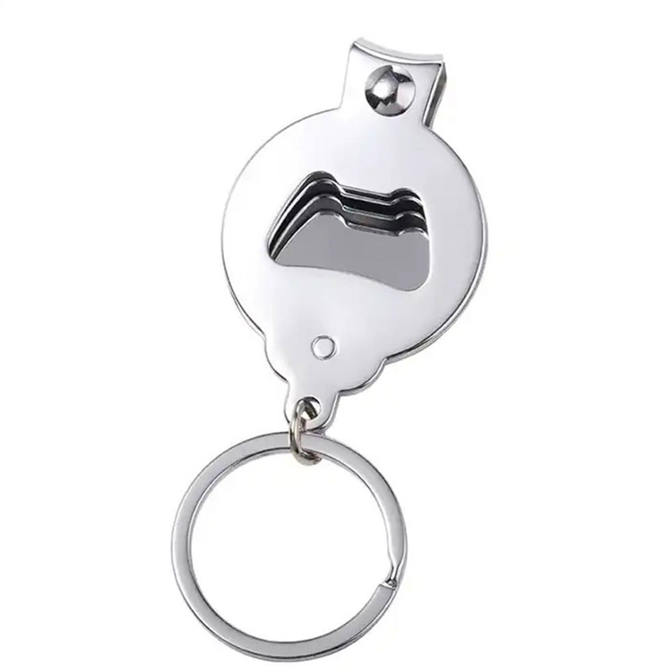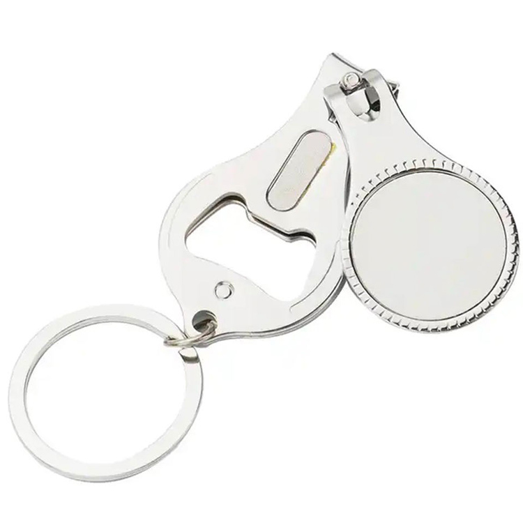 Skládací kroužek na klíče na ruce Nůžky na nehty Nůžky na nehty Odolný multifunkční skládací kroužek na klíče s nůžkami na nehty, otvírákem na láhve a držákem klíčů, ideální pro cestování a každodenní použití. Sublimační prázdný povrch umožňuje vlastní loga nebo návrhy, což z něj dělá ideální reklamní dárek nebo personalizovaný doplněk.