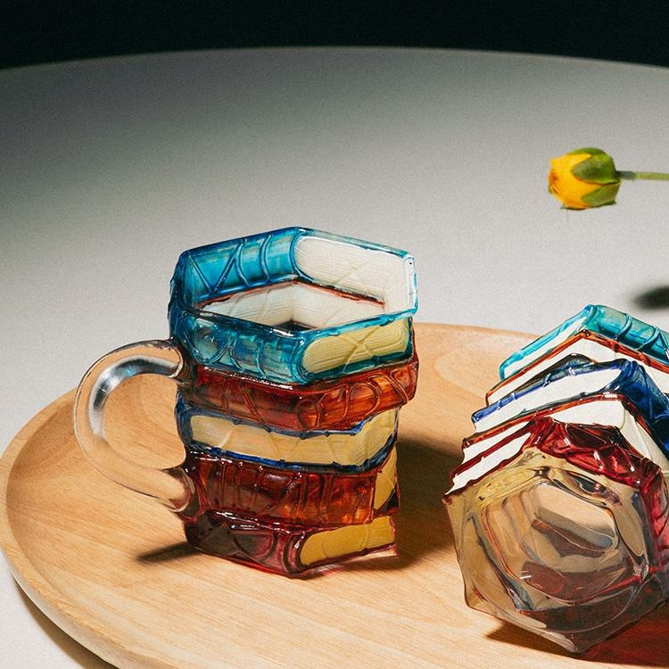 Ručně malovaný skleněný šálek na kávu 3D malovaná kniha hrnek na kávu. Ručně malovaná kniha Skleněný šálek na kávu s jedinečným 3D skládaným designem knihy, ideální pro milovníky knih a kávové nadšence. Odolná skleněná konstrukce se zářivými barvami, díky čemuž je ideálním dárkem nebo dekorativním kouskem pro domácnost a kancelář.