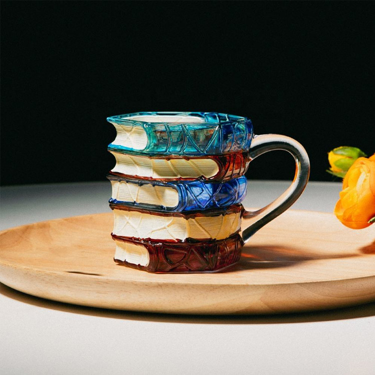 Tento kreativní šálek na kávu se vyznačuje úžasným 3D designem naskládaných knih, což z něj činí dokonalou kombinaci umění a funkčnosti. Každý detail, od texturovaných hřbetů knih až po realistické stránky, je pečlivě vytvořen, aby potěšil milovníky knih i sběratele.