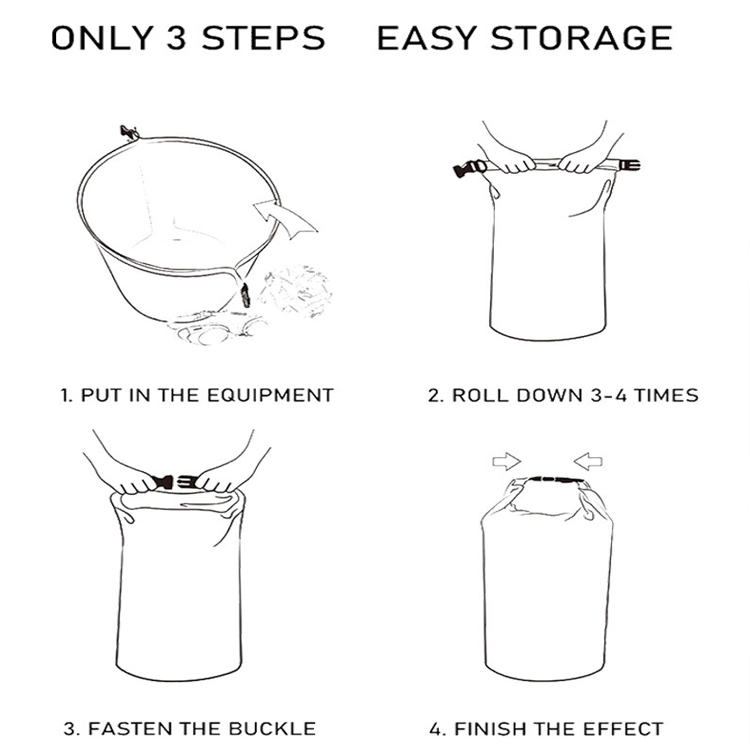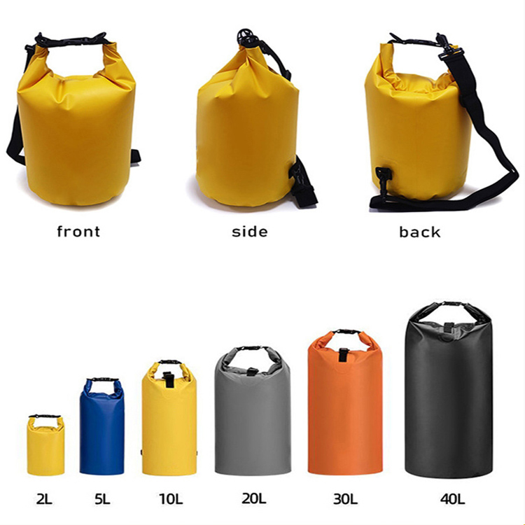 Přenosné skládací skládací 2 l 5 l 10 l 20 l 40 l vodotěsné tašky. Vaše dokonalé vodotěsné úložné řešení pro vodní dobrodružství. Tyto suché vaky s potiskem loga nabízejí různé možnosti kapacity od 2 l do 40 l. Perfektní pro plážové cestování, rafting a outdoorové aktivity, poskytují kompletní ochranu suchého skladu v jakémkoli prostředí.