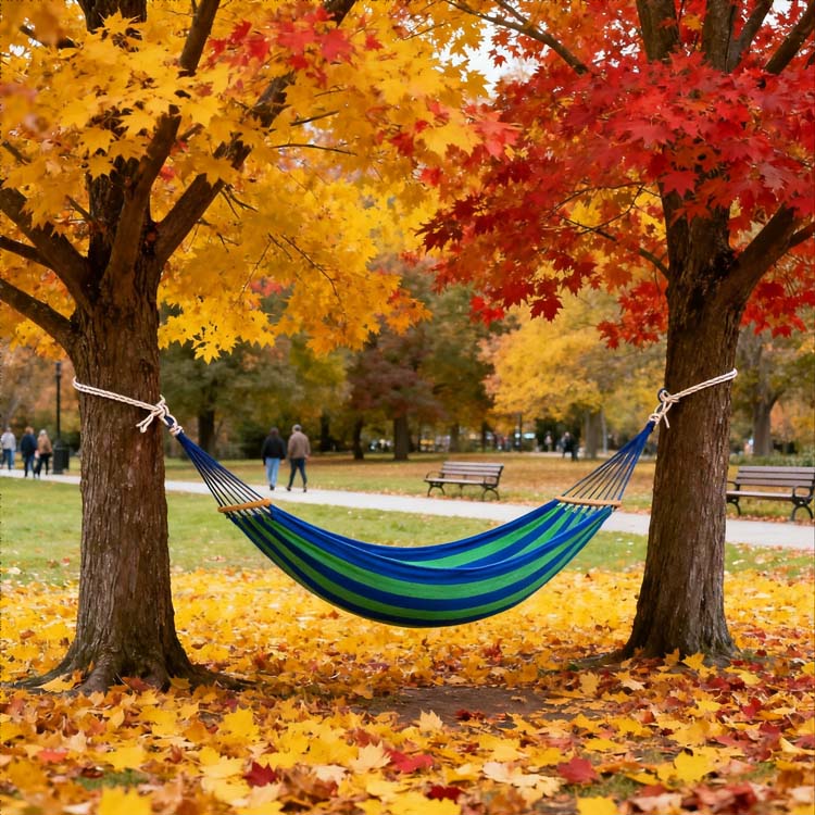 Tato houpací síť, vyrobená z vysoce hustého nylonového taftu padákového stupně, který kombinuje výjimečnou pevnost s měkkostí, poskytuje vynikající pohodlí a odolnost, přičemž s jistotou podpírá až 400 liber.