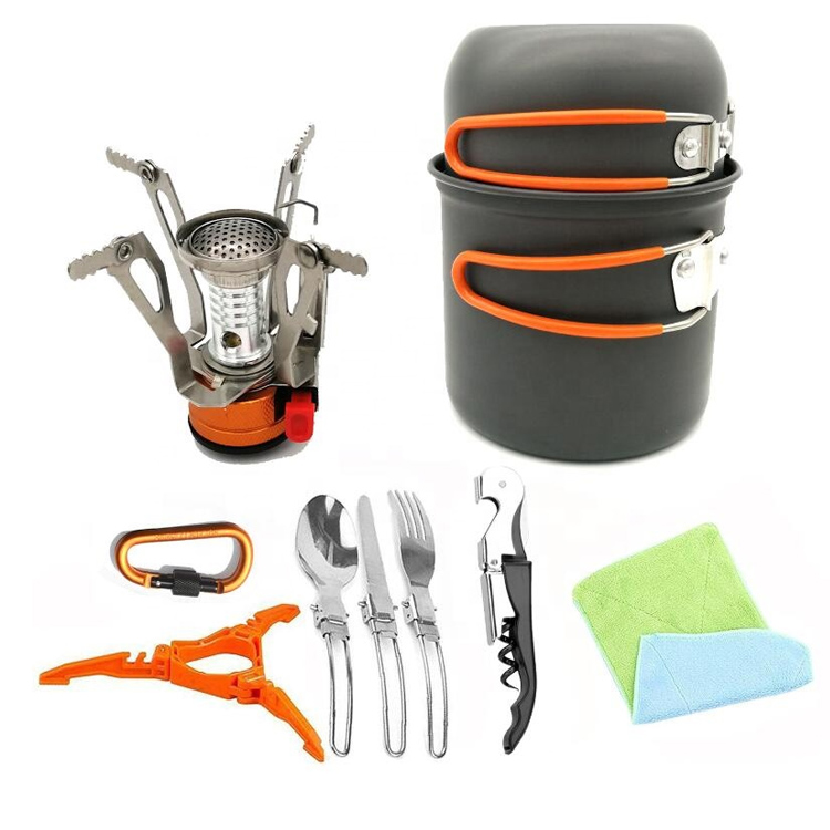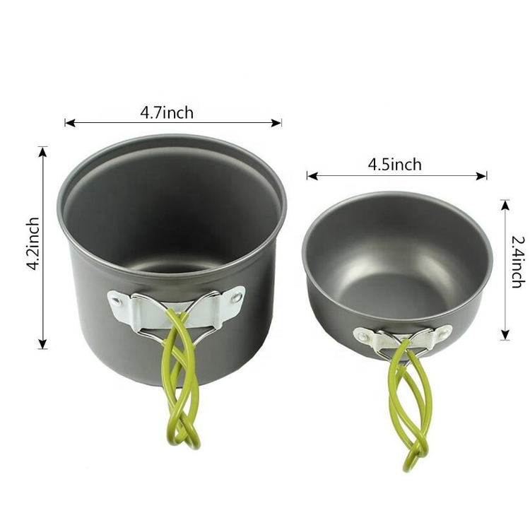 Outdoor Portable Camping Pěší turistika Backpacking Cooking Set.Your Ultimate kompaktní řešení vaření pro outdoorové dobrodružství. Tato sada nádobí pro horké produkty je navržena pro kempování a pěší výlety pro 1–2 osoby. Perfektní pro batohy a pohotovostní připravenost, kombinuje základní nástroje pro vaření s maximální přenosností.