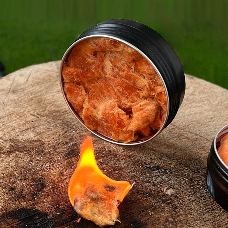 Flexibilní tinder, navržený pro snadné použití ve stresových podmínkách, vyžaduje pouze jiskru z vaší ferro tyče nebo zapalovače, aby okamžitě zachytil plamen, takže je vhodný pro nouzové scénáře.
