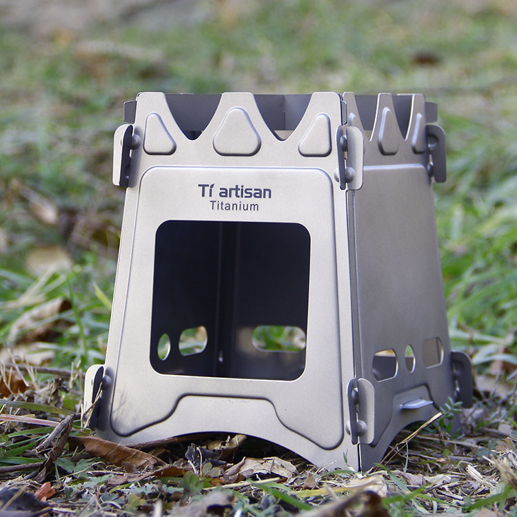 Přenosný kempingový sporák na dřevo Titanový hořák na dřevo. Váš dokonalý systém venkovního vaření vše v jednom. Tento titanový sporák na dřevo slouží jako účinný víceúčelový sporák a zároveň se integruje s turistickými batohy pro maximální přenositelnost. Ideální pro pěší turistiku, jízdu na horském kole a dobrodružství v kempování v divočině.