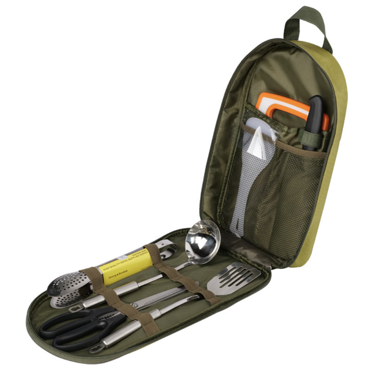 Vše, co potřebujete pro venkovní vaření, je perfektně uspořádané v jedné přenosné tašce, což eliminuje potíže se shromažďováním samostatných kempinkových nástrojů a příslušenství pro vaše výlety.