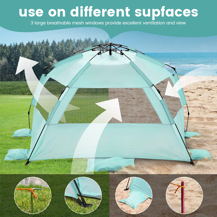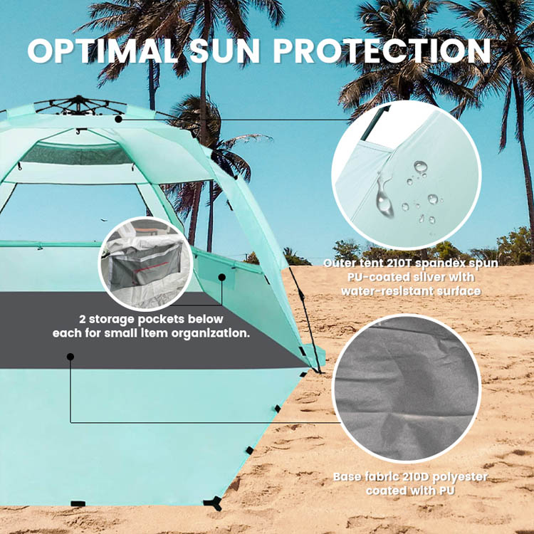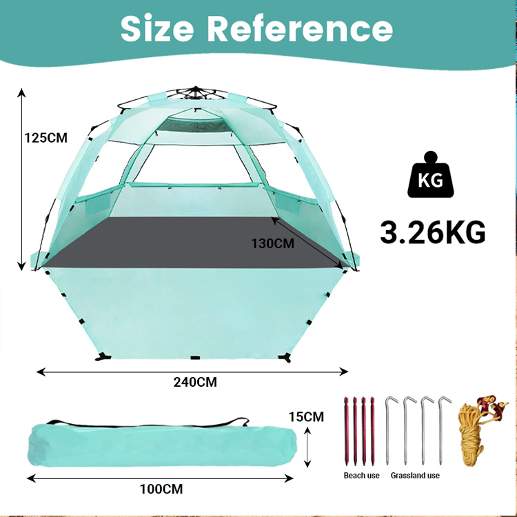 Velkoobchodní Bulk Ultralight Polyester Sun Shade Beach Tent.Your Premier velkoobchodní řešení pro ochranu proti slunci na pláži. Tento ultralehký polyesterový stan se slunečníky se vyznačuje praktickým vyskakovacím skládacím designem. Perfektní pro hromadné venkovní použití na pláži, kombinuje snadné nasazení se spolehlivým pokrytím stínu.