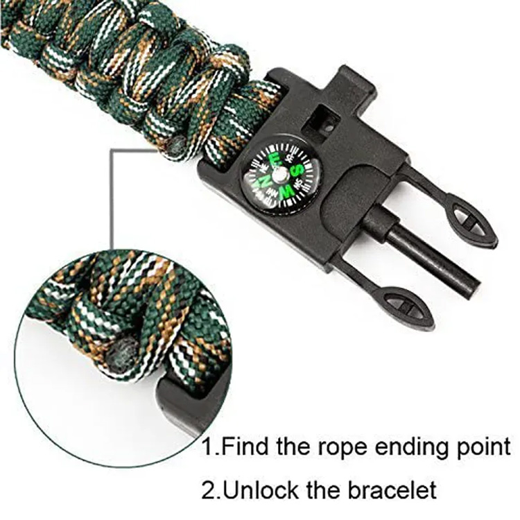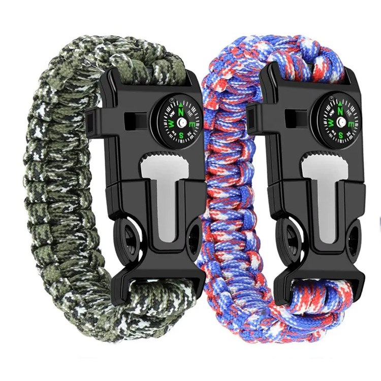 Velkoobchodní ukázkový náramek na přežití 550 LBS taktický paracord. Vaše základní vybavení pro přežití pro venkovní dobrodružství. Tento taktický paracordový náramek se vyznačuje pozoruhodnou silou 550 LBS. Perfektní pro kempování a nouzové situace, nabízí praktické využití i stylový design. K dispozici pro velkoobchod s bezplatnými vzorky.